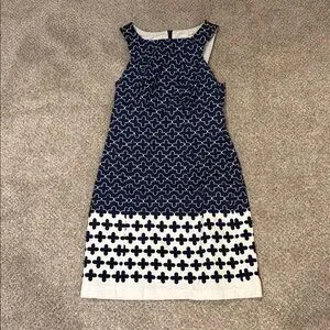 Boden Chic Navy and White Patterned Mini Dress 4R