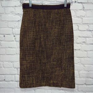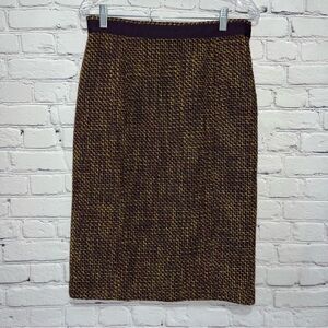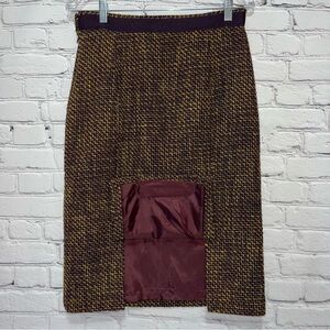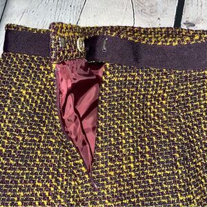 Color: Wool Blend Tweed Skirt with an exterior color of Mustard & Eggplant