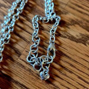 Special Features: Blue and Black Inlaid Enamel, Silver Edging accents, Heart Motif, Reversible to all Silver with Pretty Heart Engraving, Silver Swirl Connector, Silver Chunky Chain, Oval Links, Lobster Claw Clasp, Extension, Brighton charm at nape. So Lovely 😍