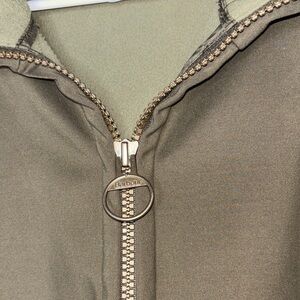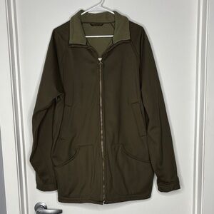 Olive jacket with front zip. Two spacious pockets. Perfect for layering.