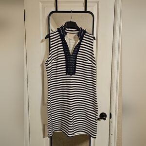 Elegant sleeveless dress with navy and white stripes. Excellent condition, worn twice. Side zip.