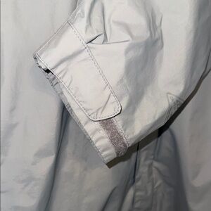 Stylish gray hooded jacket by Columbia. Packable into pocket. Perfect for outdoor adventures.