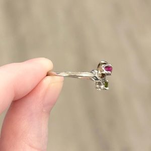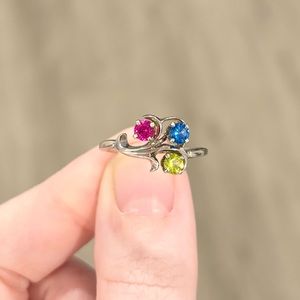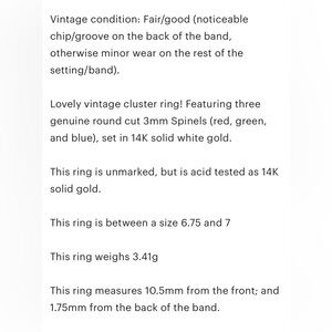 Lovely vintage cluster ring! Featuring three genuine round cut 3mm Spinels (red, green, and blue), set in 14K solid white gold.