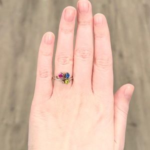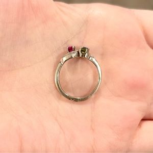 14K Rainbow Spinel red blue green gemstone cluster vintage white gold ring