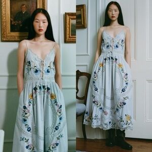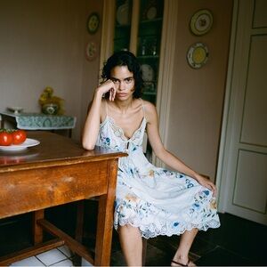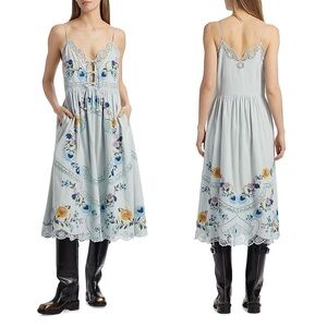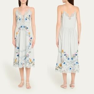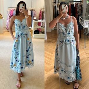 Sea dress, Sea New York, embroidered dress, floral midi dress, cotton linen dress, boho dress, cottagecore, romantic dress, lace trim dress, slip dress, designer midi, spring summer dress, resort wear, vacation dress, size large