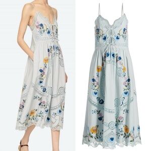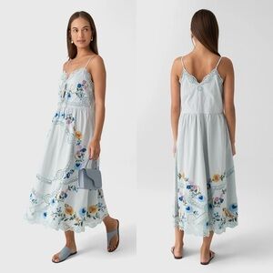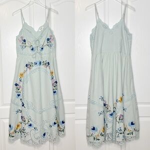 Sea NY Celia Embroidered Slip Dress Floral Cotton Linen Midi Size Large