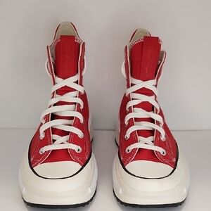 Stand out with these striking red Converse high-tops. Perfect for adding flair to any outfit.