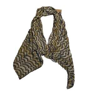 Retro-inspired sheer kimono blouse top from LOLA, featuring metallic gold and silver lame accents. This stylish top is perfect for adding a touch of vintage glamour to any outfit. Made from a lightweight, sheer fabric, it's ideal for layering.