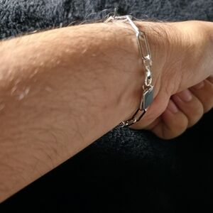 This elegant silver chain bracelet adds a touch of sophistication to any outfit. Perfect for any occasion.
