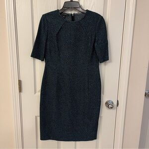 St. John Short Sleeve Tweed Dress in Teal Multi Size 6
