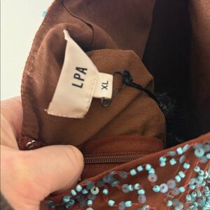LPA Barbi Beaded Micro Mini Dress in Brown & Fuchsia