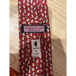 Add a festive touch to your wardrobe with this Vineyard Vines Red Nosed Reinbeer Pattern Print Silk Tie. The tie features a novelty pattern of red reindeer and the word "Vineyard" in a playful font. The tie is made of 100% silk and is woven in a classic style with a width of 3 1/2 inches and a length of 59 inches.