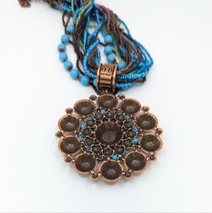 Joan Rivers copper and seed bead statement medallion pendant necklace. Great pre-owned condition with very minimal overall wear, no call outs to note
