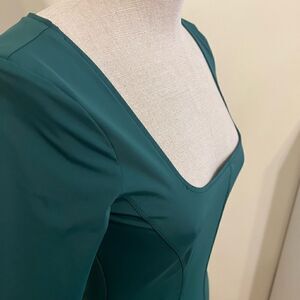 Midi dress made with a polyamide blend. Squared neckline and below-the-elbow length sleeves with hidden in-seam zippers
