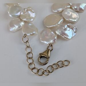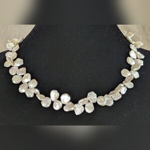 A luminous statement of organic elegance. This 18.5-inch strand features massive 12.5mm average Keshi pearls, often referred to as "Cornflake" pearls for their unique, flattened baroque shape and extraordinary metallic luster. Because Keshi pearls are non-nucleated, they are composed of solid nacre, ensuring a glow that never fades. Expertly finished with a secure 14K Gold Filled clasp, this necklace has a substantial, luxurious weight of 45.3 grams.
