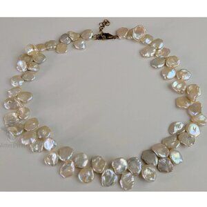 18.5" Keshi 12.5mm Cornflake Cultured Pearl Necklace Gem Quality 14k GF