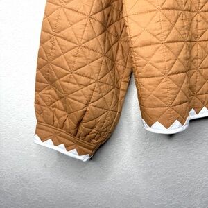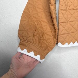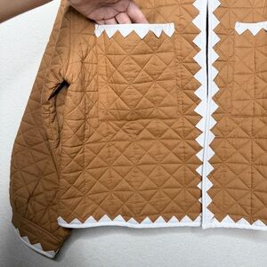 Tags: anthropologie quilted jacket, zigzag trim jacket, quilted boho jacket, anthropologie camel jacket, cottagecore jacket, boho layering jacket, lightweight quilted coat, brown quilted jacket women, open front jacket anthro, fall spring jacket, boutique quilted jacket