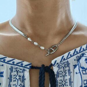 Freshwater Pearl Necklace Double D Toggle Clasp Elegant Minimal Chic