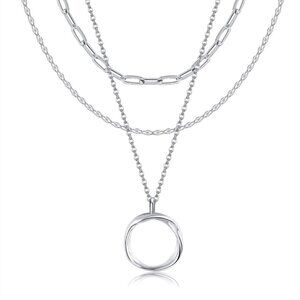 Sterling Silver Triple Layered Necklace Boho Chic Adjustable Long Pendant