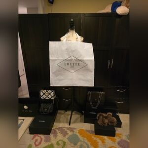 Brand New White Frette Dust Bag and satin navy ribbon ties.