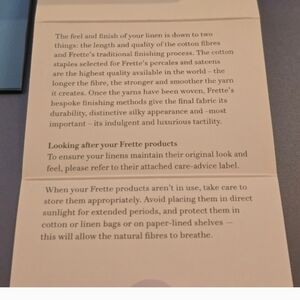 Frette (/frɛˈteɪ/ freh-TAY) is an Italian textile company that manufactures linen. Established in Grenoble, France, in 1860, it was relocated to Concorezzo, Italy, five years later. Their headquarters are currently in Monza, Italy. As of 2023, the company owns and operates over 100 boutiques worldwide. Copyright from Wikpedia Online
