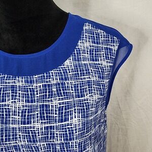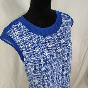HALOGEN Size Small Japanese Grid Print Round Neck Cap Sleeve Chiffon Work Blouse
