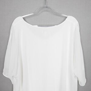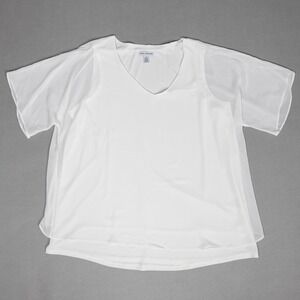 Nina Leonard Women's 1X White V-Neck Layered Short Sleeve Tunic Top Blouse