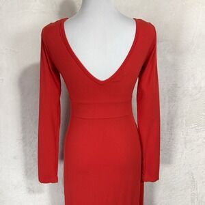 Bebe Long Sleeve Knit Maxi Dress Small Red Swarovski Crystal Rhinestone Logo USA