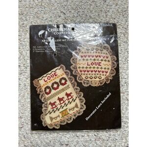 Keywords: Christmas ornaments, counted cross stitch, cross stitch kit, needlepoint, DIY, craft kit, holiday decor, Christmas craft, handmade ornament, Nicole Creations, stocking ornament, heart ornament, vintage craft kit