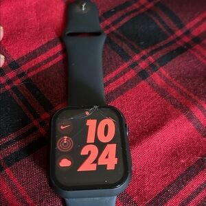 Apple Watch Series 8, 45mm. I purchased this for my son who wore only a few times. He did crack the screen. Pictures show the crack. Otherwise it’s fully functional and can be used and the crack doesn’t interfere with the functionality at all. It also can be repaired if so desired.
