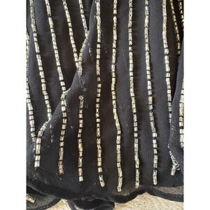 Keywords: Parker Black, beaded dress, cocktail dress, party dress, sleeveless dress, black dress, size 6, evening dress, special occasion dress, knee length dress, tiered dress, ruffle hem, V-neck dress, tie waist dress