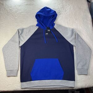 Under Armour Hoodie Mens XL Blue Gray Colorblock Rival Fleece Sweatshirt