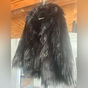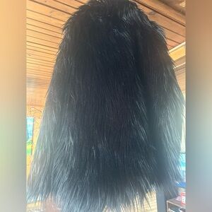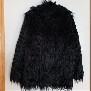 Chic black teddy jacket. Plush faux fur design. Ideal for cozy elegance.