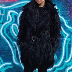 Dolls Kill Midnight Black Faux Fur Teddy Jacket