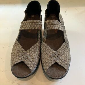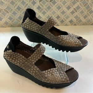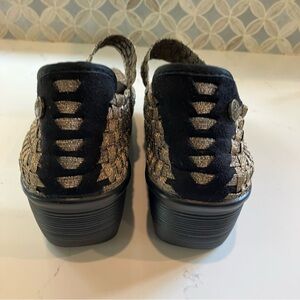 NWOB Bernie Mev. Women's Lulia EU Size 41/US 9.5 Gold Black Basket Weave Wedge