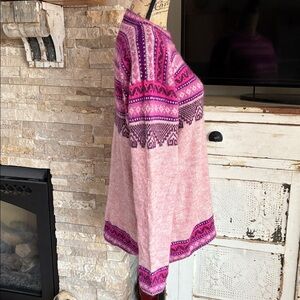 Beautiful Alpaca Connections Made in Peru alpaca blend purple and pink fair isle style crew neck long sleeve sweater.