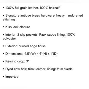 NWT PATRICIA NASH Leopard Calf Hair Borse Coin Purse