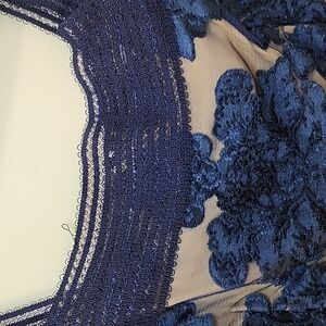 This stunning navy blue lace dress is perfect for any special occasion. The intricate lace design adds a touch of elegance and sophistication. Ideal for evening events or formal gatherings.