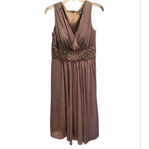 Jessica Howard Taupe Sleeveless High Wasted Midi Length Flowy Glitter Dress Sz 8