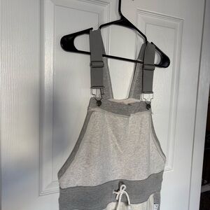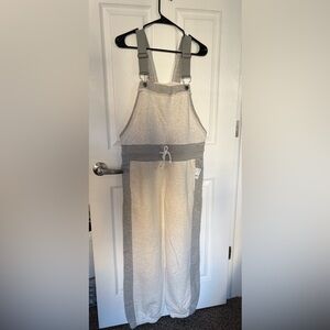 Chic jumpsuit with adjustable straps. Soft gray and cream fabric. Ideal for casual outings. Brand new with tags.