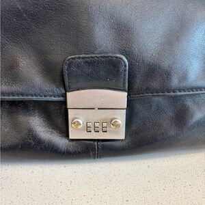 LE TANNEUR Briefcase Business Shoulder Bag Handbag Leather Black Lock EUC