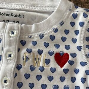 Roller Rabbit (2) SETS W/ INITIALS Blue White Monkey/Heart set Pajama Set-12/18