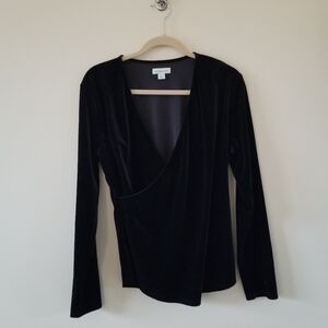 Sundance Black Velvet Faux Wrap Surplice Long Sleeve Top Womens Large