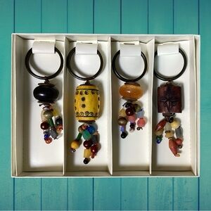 NWT Pier One Imports Multicolored Hand Carved Beaded Napkin Rings OS