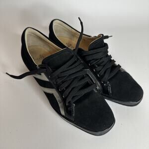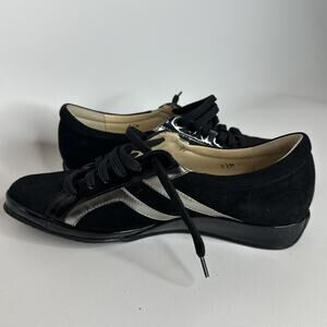 Amalfi By Rangoni Womens 6.5 Black Suede Leather Lace Up Sneakers Silver Trim