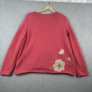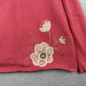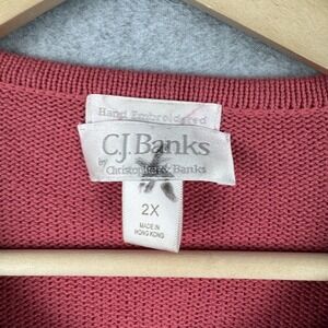 Vintage CJ Banks Sweater Womens 2X Pink Floral Embroidered Cardigan Y2K Granny
