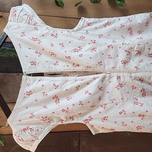 **Fit:** Shapeless, shift-style; A-line hem **Features:** Soft cotton fabrication, scoop-neckline with collar detail and functional tie, button-front detailing, drop-waist seam, keyhole cutout at back, cap-sleeves, lined.