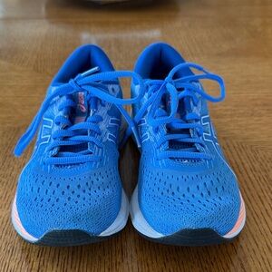 Here is a pair of (USED) previously worn Women’s ASICS GEL-Excite 7 size 8.5 running/walking shoes. These shoes appear to be only worn a few times take a look at the photos of the outsoles/tread area. These shoes are in very clean condition with some minor dirt stains on the bottom outsoles & the outside heel area. These shoes will come from a clean smoke free home. Please ask questions if you have any??? Please make an offer if you really want them! Thanks for your interest 😊
