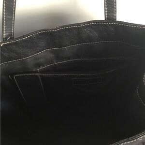 This elegant black leather tote bag is perfect for any occasion. Its sleek design and durable material make it a must-have accessory. Ideal for both casual and formal settings. Excellent condition leather Moda bag 15X13