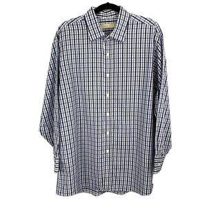 Michael Kors Mens Blue White Gingham Check Button-Front Shirt SZ 17.5 / 32 33